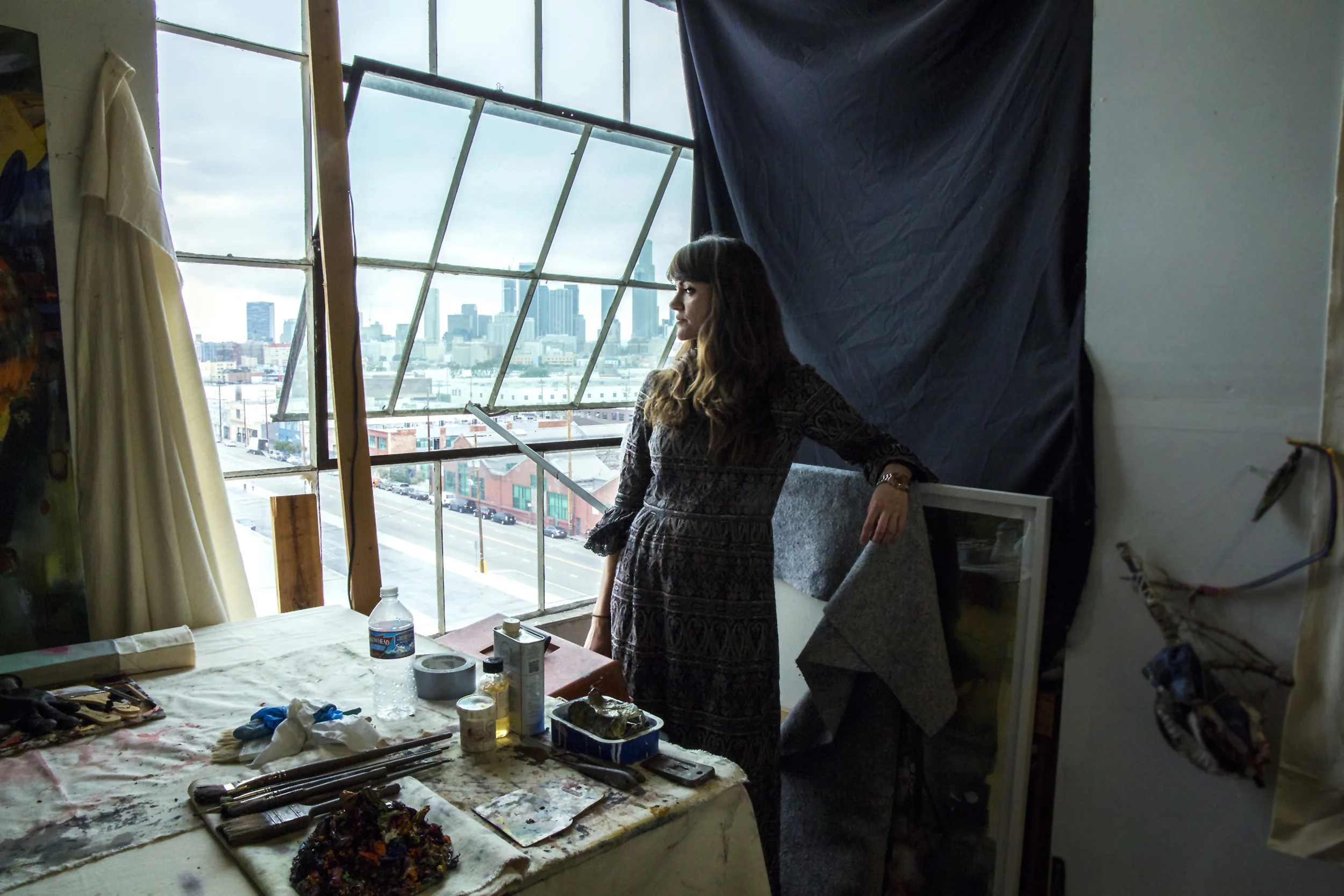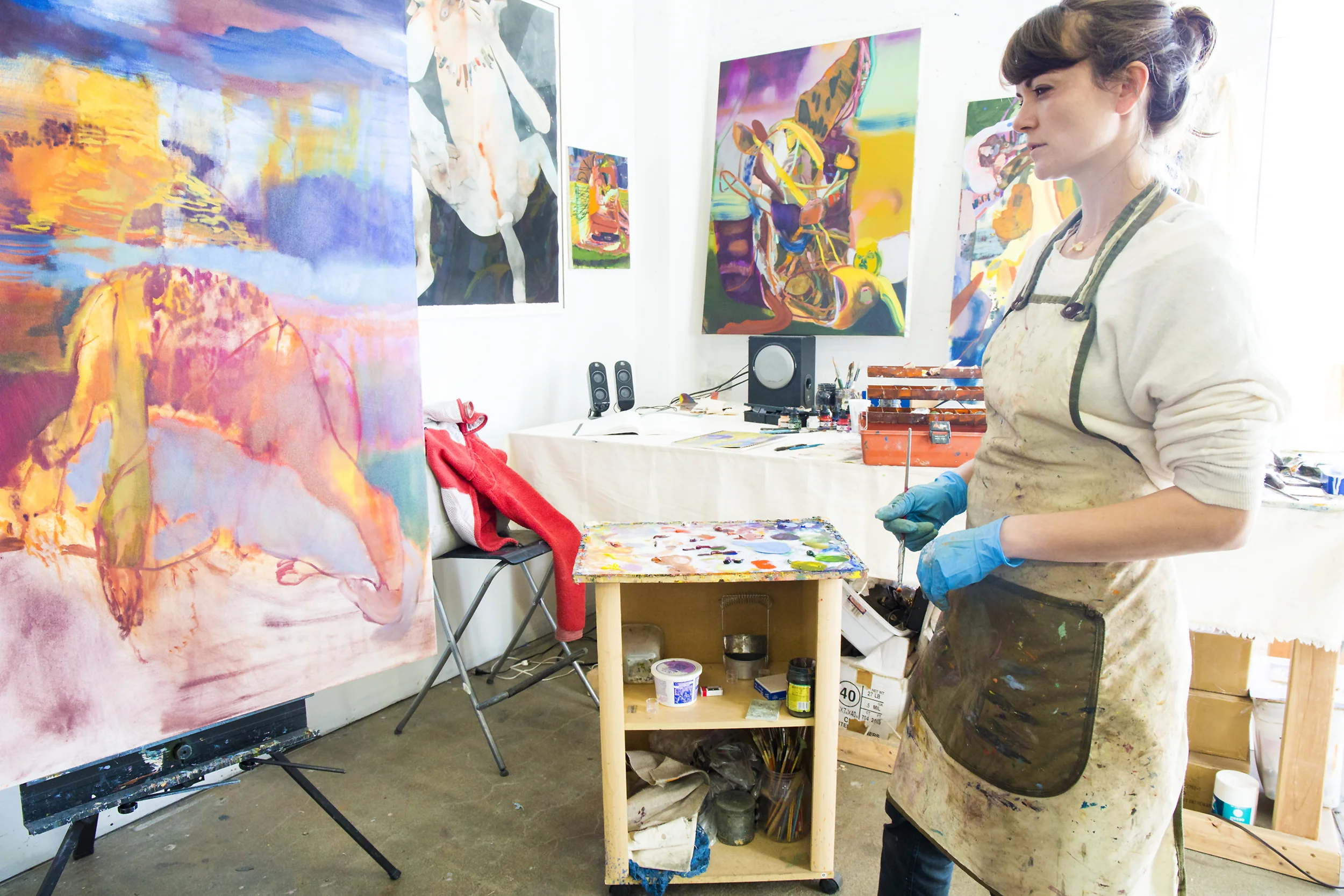 Maja often rides the metro to her studio when she is not teaching at the Hope Center For The Arts in Anaheim. She works with adults who have various intellectual challenges, such as Autism, Down Syndrome, or William's Syndrome. She learns a lot from her students and says watching them paint reminds her to keep a childlike freedom in her own work.